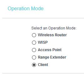 Il faut choisir le mode Client, dans ce mode, il se comporte comme un client Wifi et fait le lien avec l’équipement qui lui est connecté en Ethernet.