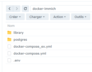 Je vais avoir besoin d’un dossier sur le NAS, j’ajoute le dossier immich-app dans le dossier docker.
